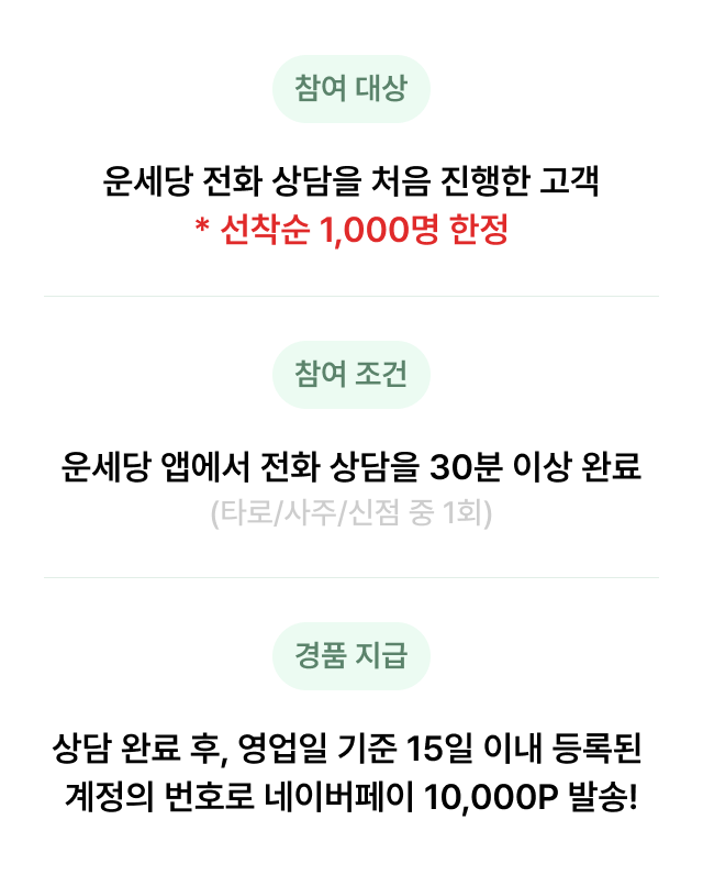 - ๋ณธ ์ด๋ฒคํธ๋ ์ด์ธ๋น ํ๋ถ/์ ๋ถ ์ ํ ์๋ด์ ์ต์ด 30๋ถ ์ด์ ์งํํ ๊ณ ๊ฐ๋ง ์ฐธ์ฌ ๊ฐ๋ฅํฉ๋๋ค.